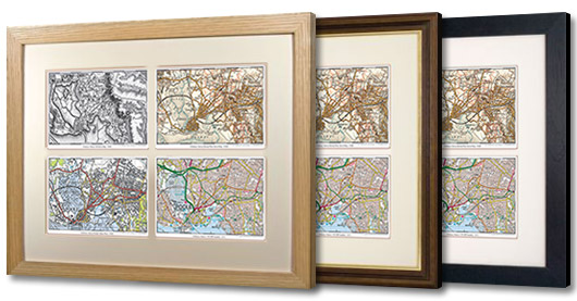 All maps can be selected by postcode or place name. All come in a choice of Deluxe frames with a pale ivory mount.